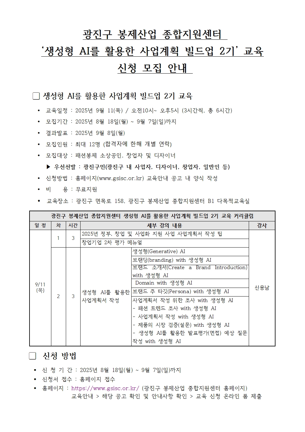 [모집마감] 2025년 생성형 AI를 활용한 사업계획 빌드업 2기 교육 수강생 모집